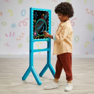 The Discovery™ Glow Easel Dual-Sided Art Station is a dynamic and innovative art tool designed to ignite the imaginations of young artists. This dual-sided easel offers a traditional drawing experience on one side and an exciting illuminated light board on the other, allowing children to explore their creativity with m