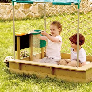 Bring playtime outside with the Teamson Kids Outdoor Summer Sandbox with Canopy. This colorful sandbox features a natural wood and deep blue square design that brings a colorful addition to your home's outdoor area. The built-in rotatable canopy offers protection from the sun while keeping your children cool in the sha