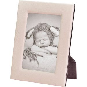 This rich leather frame beautifully accents your favorite photo. Handcrafted frames, wrapped in leather on both sides, with a sturdy metal easel. Convenient rear drop-down door for easy and frequent access to photos. Overall Size: 6" x 8" Opening: 4" x 6" full-grain leather