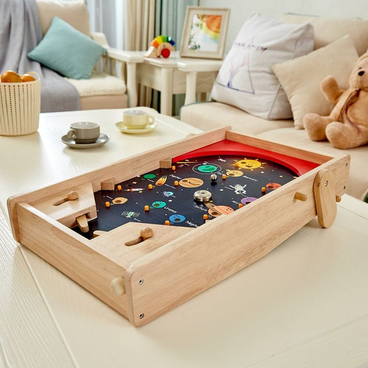 Pinball in space or soccer for two? High speed, hands on traditional table top games controlled with flippers improve hand eye co-ordination, fine motor skills, concentration and sportsmanship! Ages 3+ Materials: Wood, Steel Care instructions: Wipe with damp cloth, air dry; do not immerse in water PLEASE NOTE: This ite