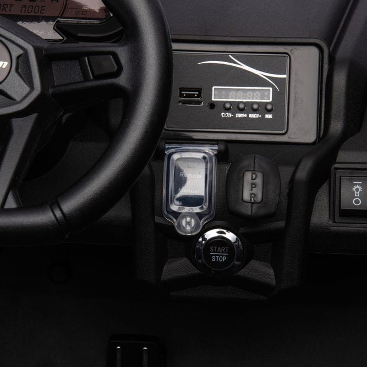 Get the whole family ready for a wildly fun ride with the 24Vx2 4×4 Can Am Maverick 2 Seater Ride on UTV for Kids! Make family rides more fun than ever with the 24Vx2 4×4 Can Am Maverick! Get ready for a safe and exciting ride with your little one. Enjoy the bump-free ride with the EVA tires, stay safe on the road with