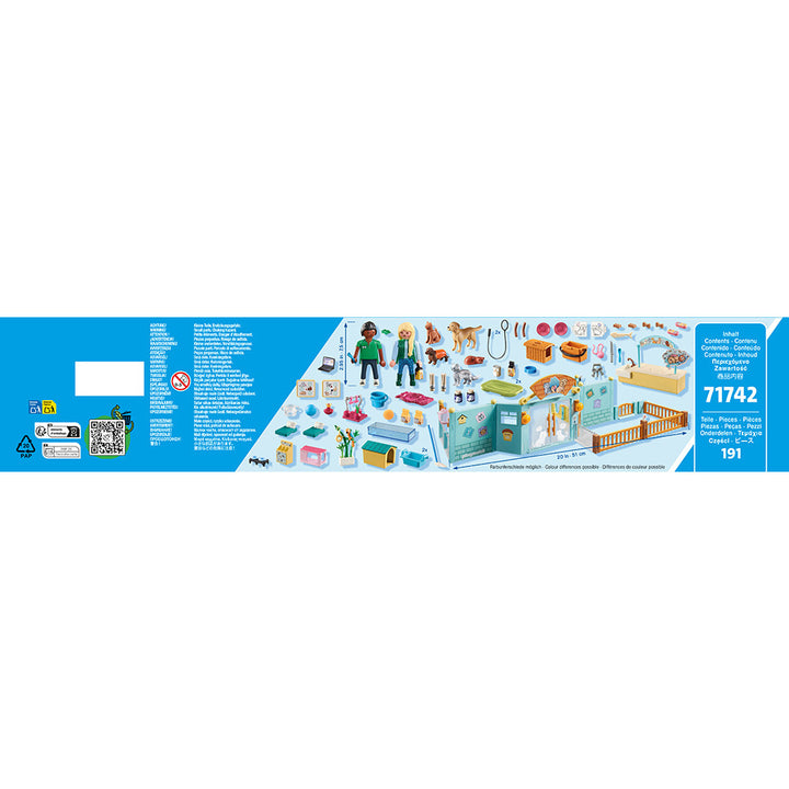 Welcome all furry friends to the new Animal Hotel. Animals of all sizes will feel right at home while their owners are away on vacation. Enter through the doors to be greeted by the friendly caretakers. Peek outside to see the dogs roaming free and exploring in the outdoor enclosure while the cats spend their time clim