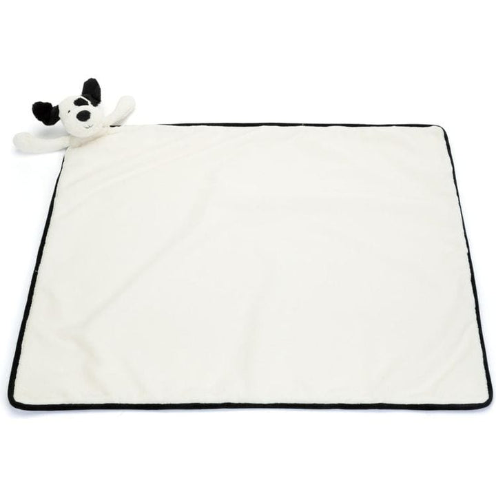 Bashful Black & Cream Puppy Blankie is a gorgeous large blanket with puppy head and arms in iconic black and cream Bashful fur created from recycled fibres. A soft spot for resting or for tummy time. Tested to and passes the European Safety Standard for toys: EN71 parts 1, 2 & 3 for all ages. New and recycled m