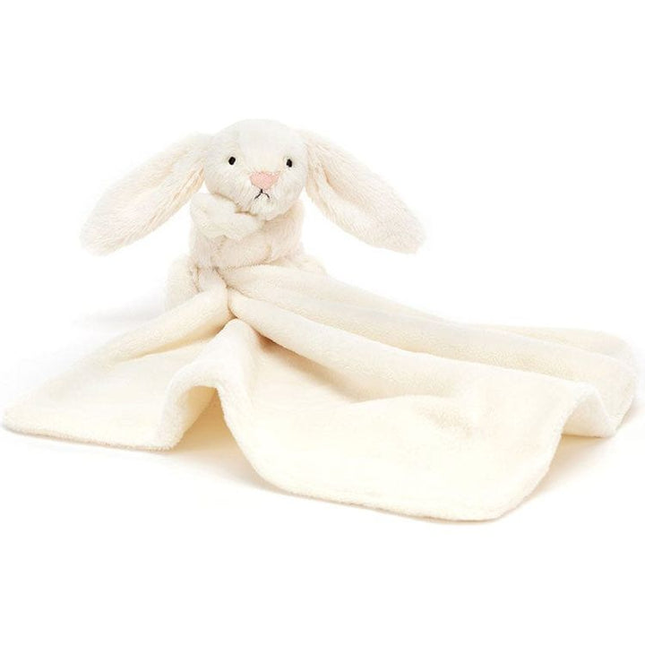 A perfect gift for newborns, the Bashful Bunny Soother is our most loved Bashful Bunny in a soft fur, with long lopped ears, a pink suedette nose and stitched eye detail holding a square shaped soother, un-stuffed and irresistibly soft to touch. Made from recycled fibers and neatly rolled up and presented with a Baby J