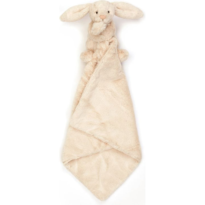Bashful Luxe Bunny Willow Soother offers the perfect comfort in luxuriously soft biscuit-gold fur. Little ones can cuddle up with the blanket or the tiny Bashful Luxe Bunny Willow holding on to the corner for the most joyful of dreams. This soother is tied with a grosgrain printed ribbon and presented in an elegant Jel