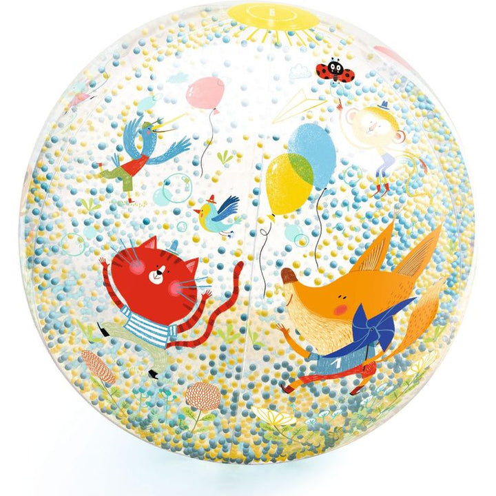 Bubbles ball is a large inflatable ball (diameter 35 cm) on the theme of water games and bubbles, filled with small coloured beads. Lightweight and easily transportable, it is the ideal companion for outdoor games or fun in the water. "Bubbling" effect with beads that shake and make noise when you shake the ball! Once