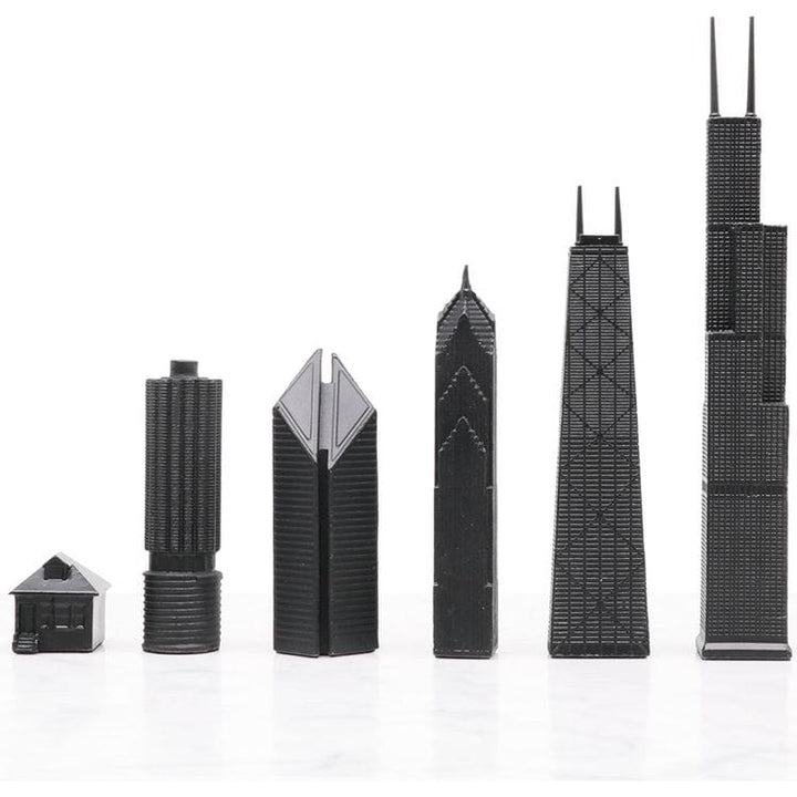 Skyline Chess takes iconic architecture from around the world and pits the greats against each other, bringing impeccable design and gamesmanship into a beautiful set. This chess set includes Chicago’s most iconic structures; including Marina City, The Crain Communications Building, Two Prudential Plaza, The John Hanco