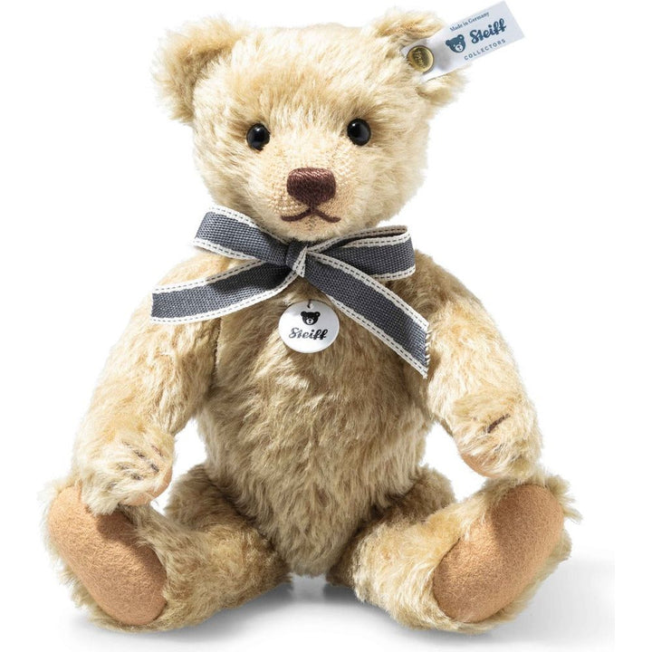 This beautifully-designed Classic Teddy Bear is made of the finest mohair and is 10 inches tall. His handsome face is framed by an elegant gingham bow around his neck, giving him a sophisticated look. A wonderful heirloom gift from the company that invented the Teddy bear in 1902. 10" plush CAUTION! This product is not