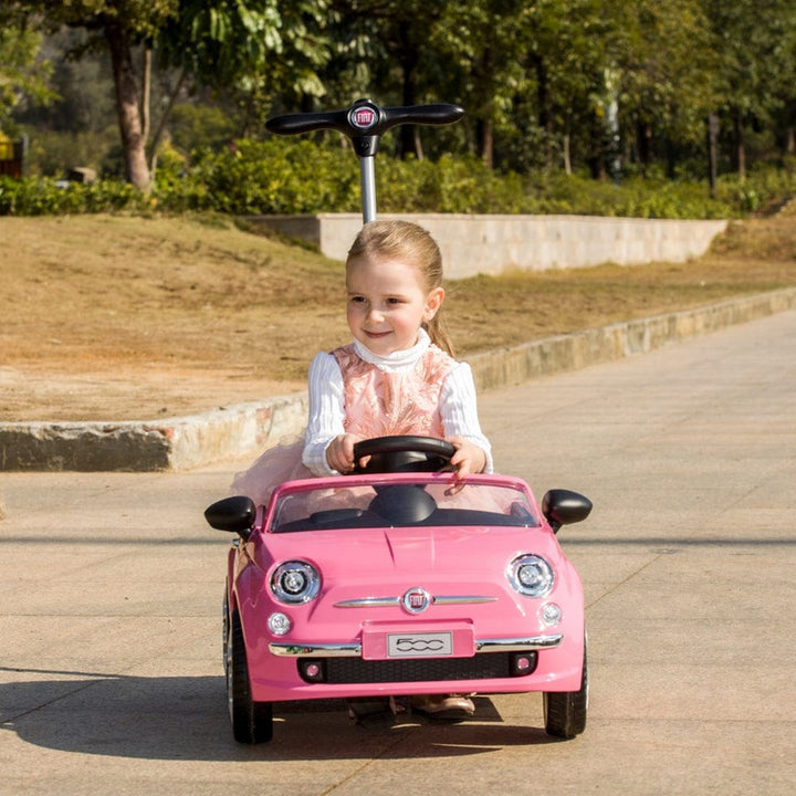 Licensed Fiat 500 push car comes with a stroller, adjustable footrest, adjustable handle, horn and music, doors open. Best for ages 1-3 years This item does not qualify for free shipping. Additional shipping costs will apply due to the size/weight of the item.