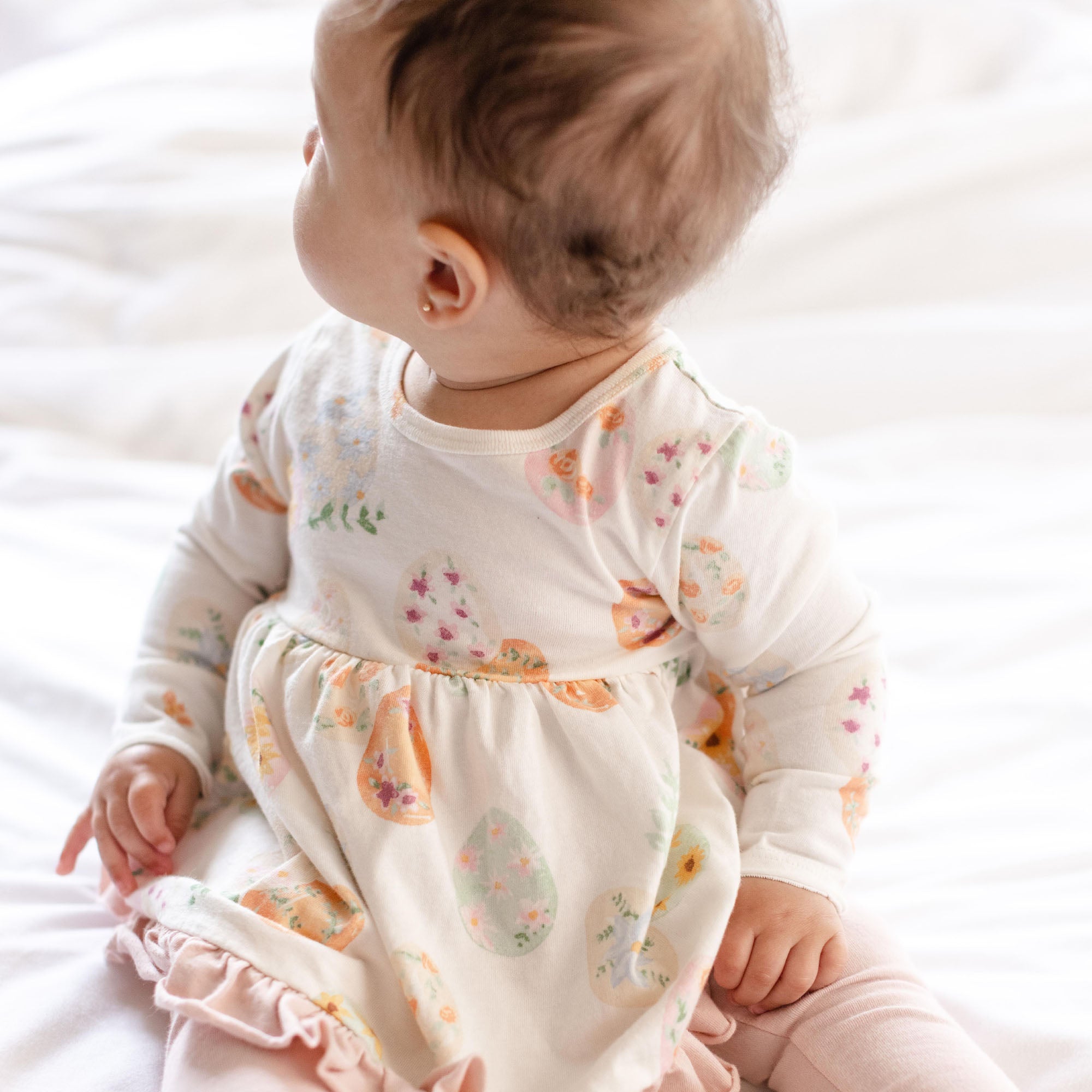 Your little one will hop into springtime smiles with this cozy floral Easter egg tunic and leggings set!