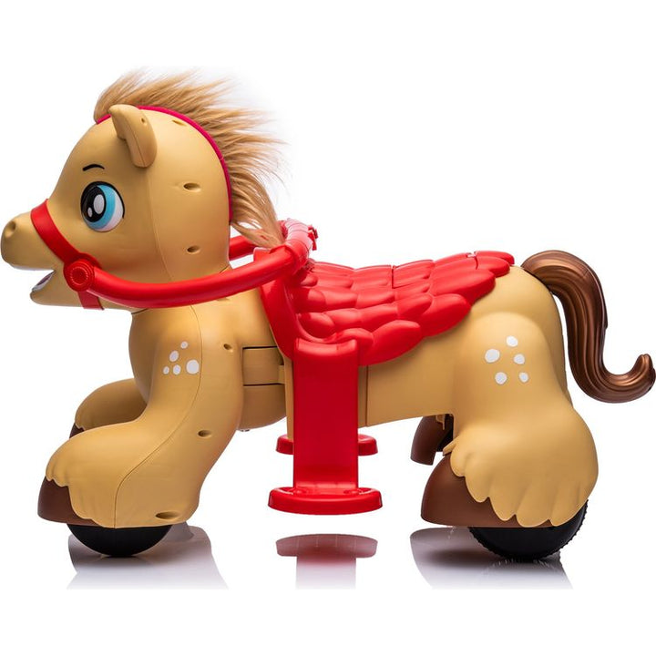 Giddy up with the Horse Ride-On Toy! This 12V ride-on is perfect for toddlers aged 18+ months. It features realistic lights and sounds, adding to the fun. The toy includes a comb and brush for grooming the horse's mane and tail, encouraging imaginative role-play. Lights and Sounds: Features engaging lights and sounds t
