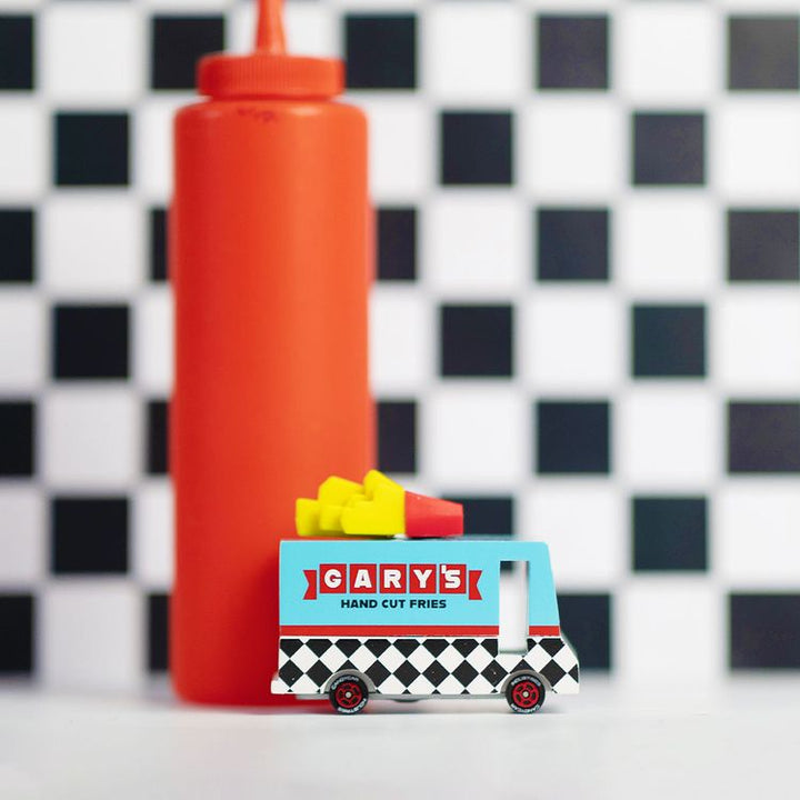 We always felt our Patty’s Hamburger Van was missing something… a side of fries! Our French Fry Van is finally here, dishing out fresh hand cut fries for all to enjoy. Complete with a silicone topper shaped like Gary's signature fries, this van looks ready to dip into your imaginary sauce of choice. Dimensions: 3.3 x 1