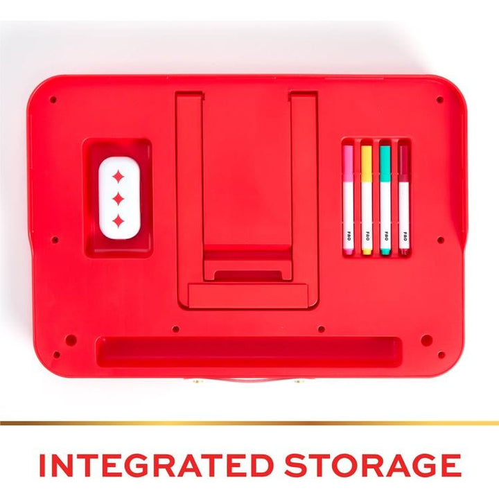 Unleash your child's creativity anywhere with the FAO Schwarz® Glow & Go Easel, a 3-in-1 Light-Up Art Studio that’s designed for versatile drawing and portability. This innovative art studio lets budding artists use it as a whiteboard, a neon glow board, or attach paper for traditional or tracing drawing methods. E
