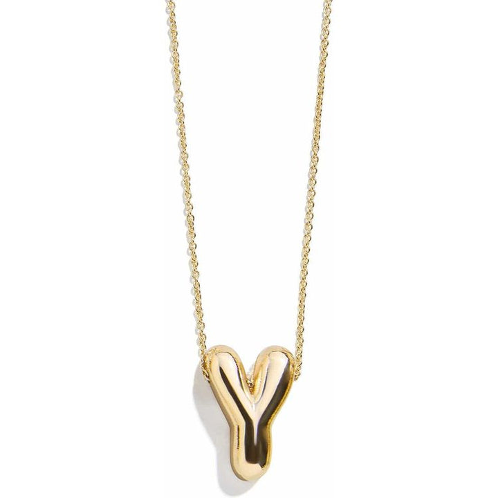 The Kid's Gold Bubble Initial Necklace features a gold chain attached to a chunky initial gold pendant. Each letter is crafted in a fun, 3D-inspired bubble font for your little one. Choose your initial or that of a loved one and stack it every single day. Magnetic closure Gold bubble initial pendant on magnetic gold ch