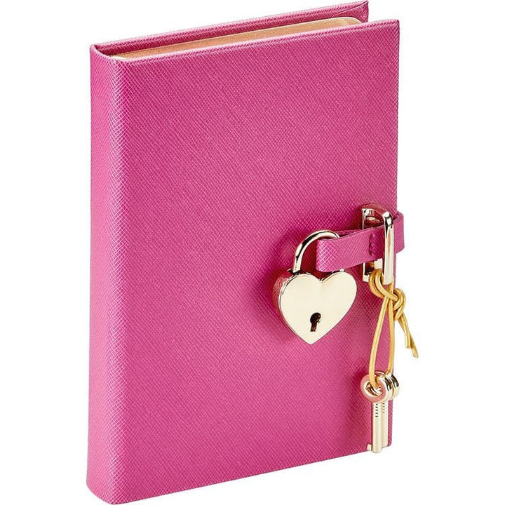 Heart Lock Journal in Pink Saffiano Leather