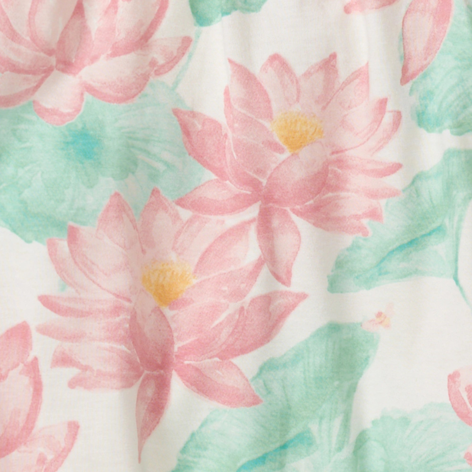 Long legs and delicate smocking with pretty straps make this lotus-print jumpsuit a cozy. charming choice for everyday adventures and special moments.