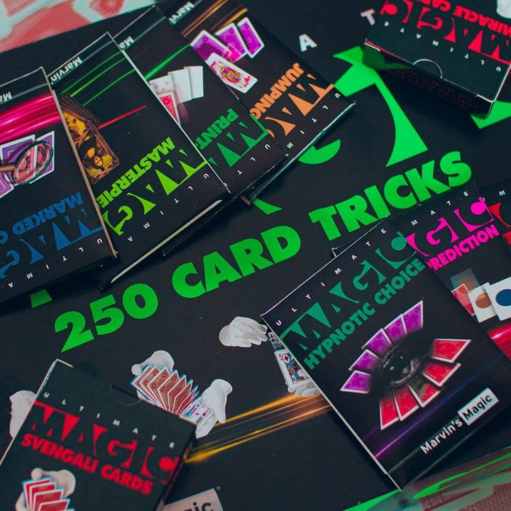 An amazing collection of 250 incredible card tricks for you to learn, perform and enjoy. Contains superb magic tricks that are truly mind-blowing! Includes interactive magic tricks plus video instructions via the free Marvin's Magic app. Put on the ultimate card show with this fantastic box, full of easy to learn card
