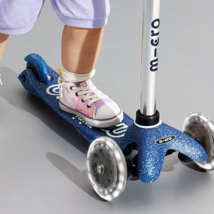 The Mini Glitter LED is a showcase of meticulously-crafted Swiss design. Its new foot deck, adorned with embedded glitter, boasts a captivating blend of style and functionality, sure to be loved by boys and girls alike. Our latest LED wheel design further enhances this fun-filled experience. Just like its Mini counterp