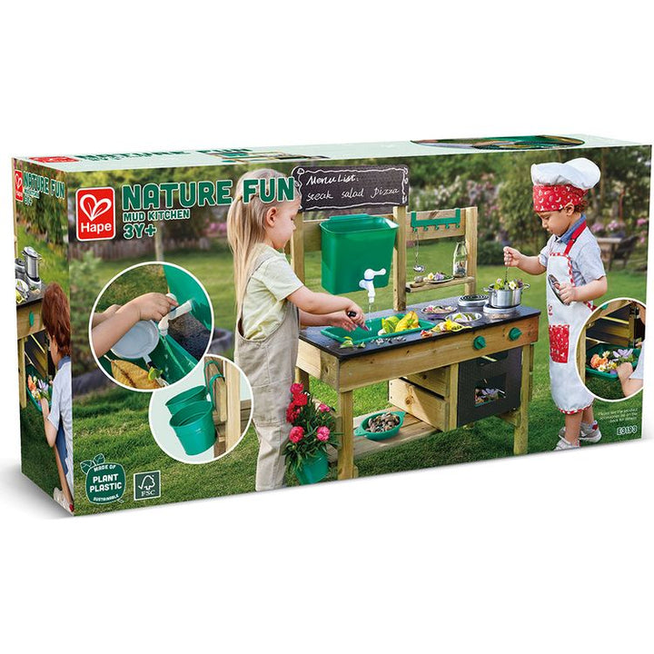 Get outside and get cooking with this adorable, durable wooden toy playset – the mud kitchen of your kid’s dreams! They’ll stay busy for ages, in the fresh air and sunshine, imitating grownups with their own set of high-quality kitchen accessories. With a pot, ladle, bowls, flowerpots, sieve, water tank, sink, faucet,