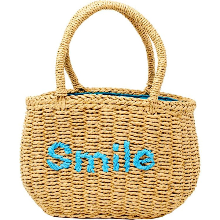 This stylish wicker basket bag is super versatile and can be used as a handbag or a picnic basket. It is perfect for a picnic or just a day out to the park. Hand stitched "SMILE" Drawstring lining Ages 3+
