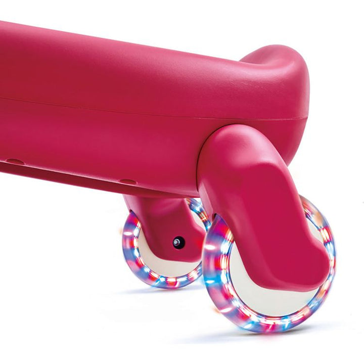 Maximum fun is guaranteed with the Wiggle & Giggle Car. The board moves by shifting body weight helping children enhance balance and coordination plus the LED lights and 8 songs add an educational twist. The silent wheels ensure a smooth, safe ride and with no assembly required, just open and ride! Cautions : Prote