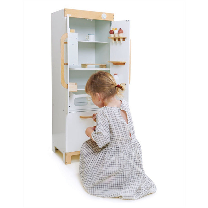 Need somewhere to chill your ice-creams? A stand-alone white fridge-freezer makes a great addition to our La Fiamma Grand Kitchen. Our stylish fridge has a real wow factor with a unique functioning ice cube dispenser which drops ice cubes with the press of a button. Complete with 3 ice-cream cornets, 3 brown eggs on an