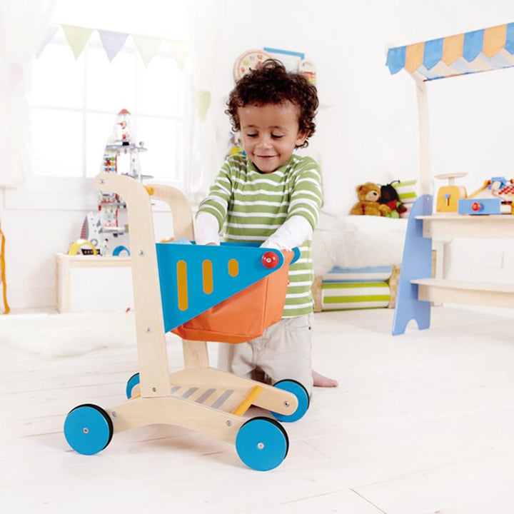 What should we buy today? Transport whatever fits in this handy carrier. Role play with your child as you "shop" through the house. Use the basket to carry toys . Boosts coordination, balance, and physical strength. Hours of creative fun play will result. This toy requires adult assembly. Durable child safe paint finish